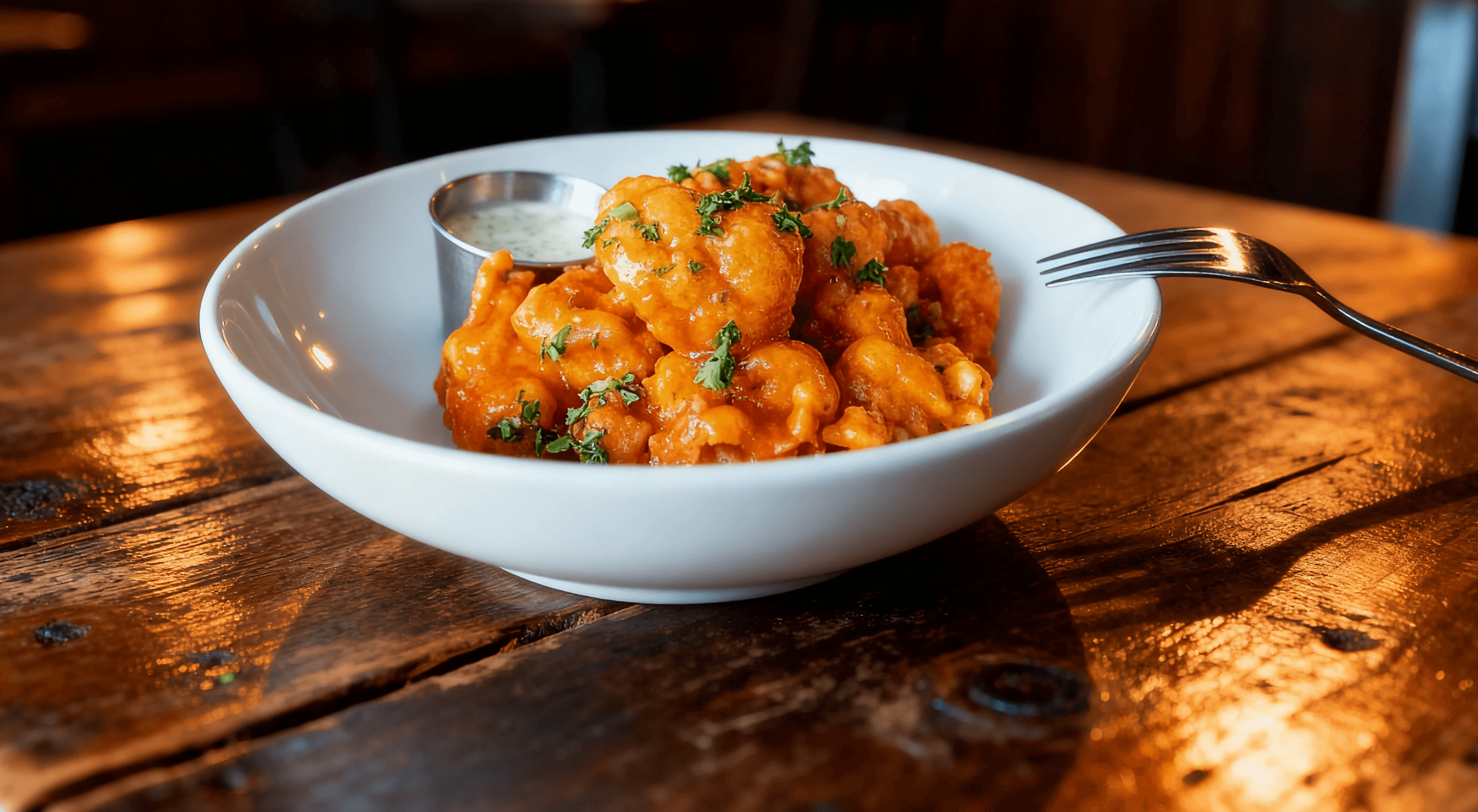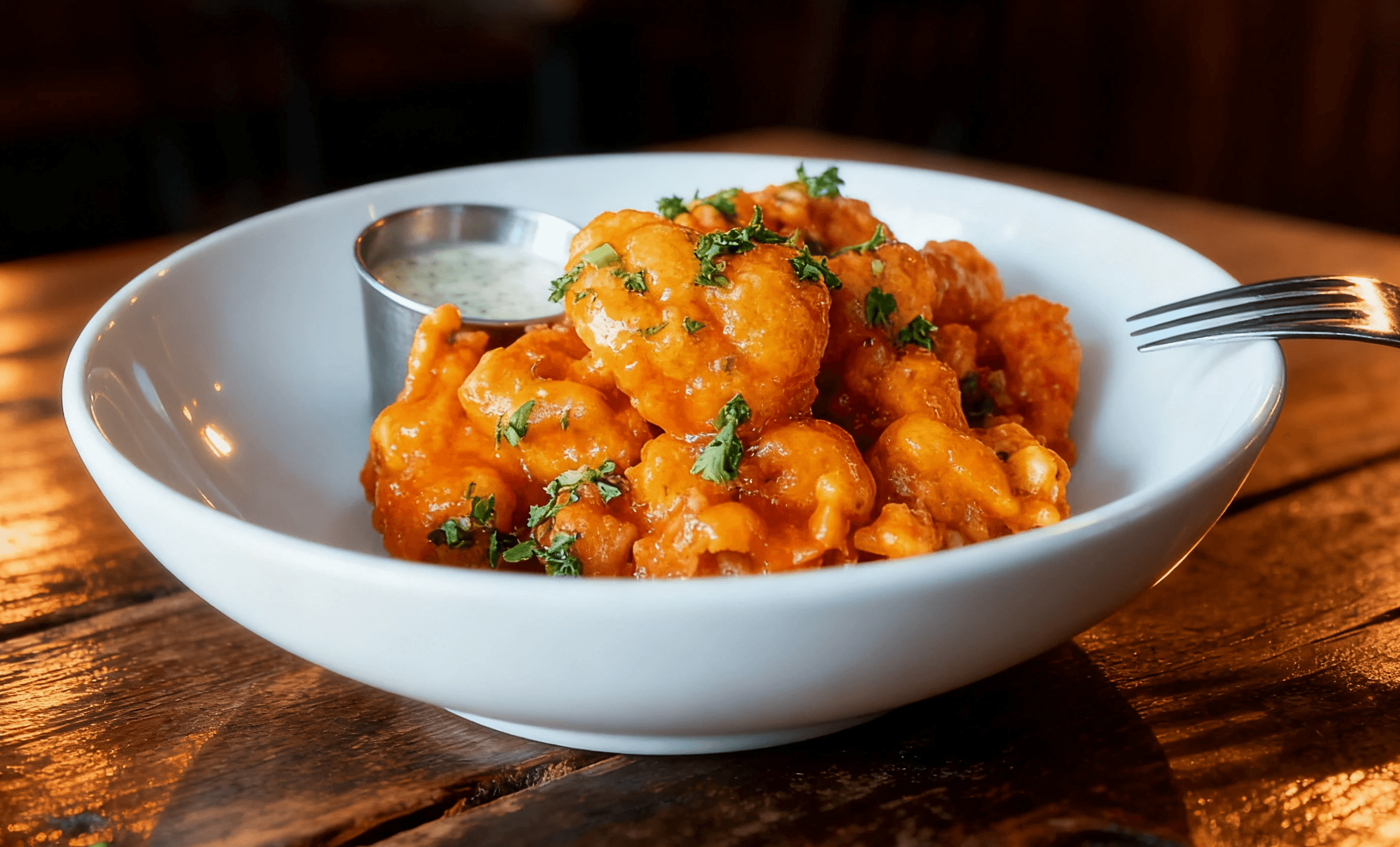 Buttered Deep Fried Cauliflower, Honey Buffalo, Lemon Ranch Dip