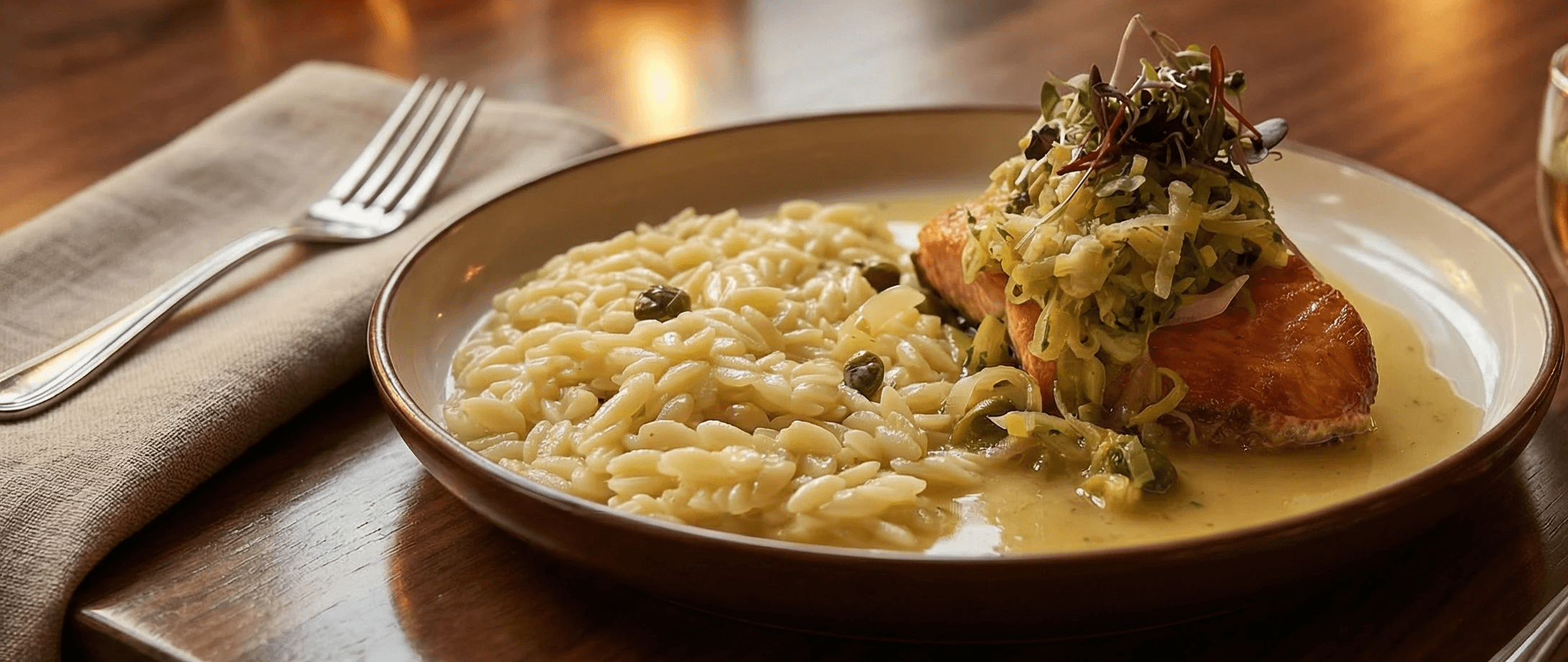 7oz Alaskan King Salmon, Sauteed Leek & Capers White Wine Sauce