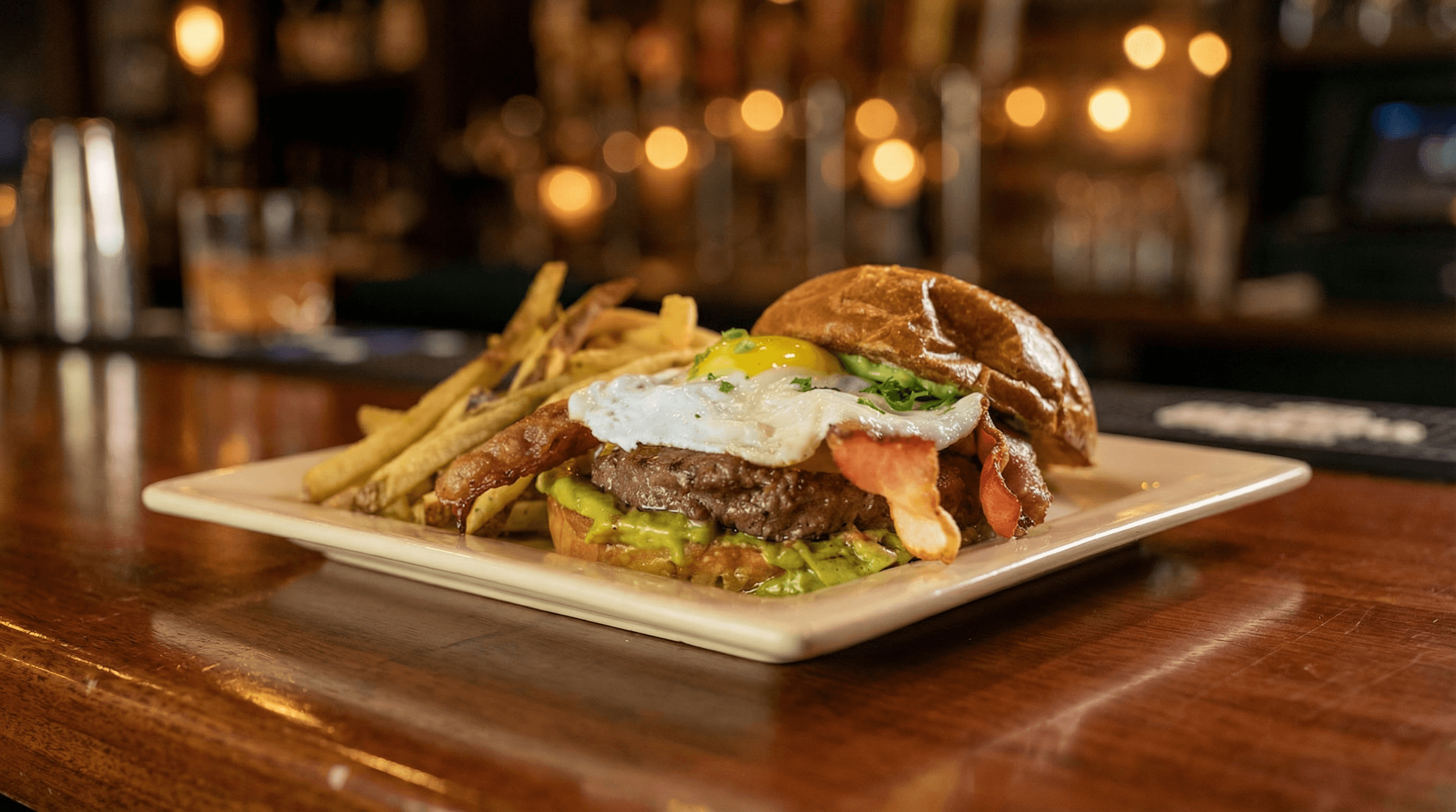 8oz Wagyu Patty, Avocado Spread, Cheddar Cheese, Sunny-up Egg, Macrina Brioche Bun (Add Bacon $3)