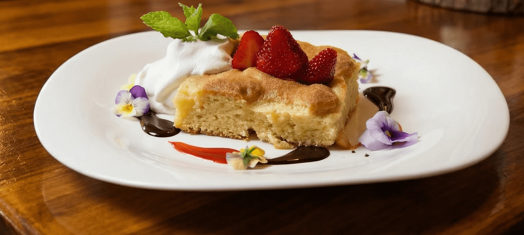 Classic French Toast, Fresh Strawberry, Banana, Powdered Sugar, Chocolate Sauce