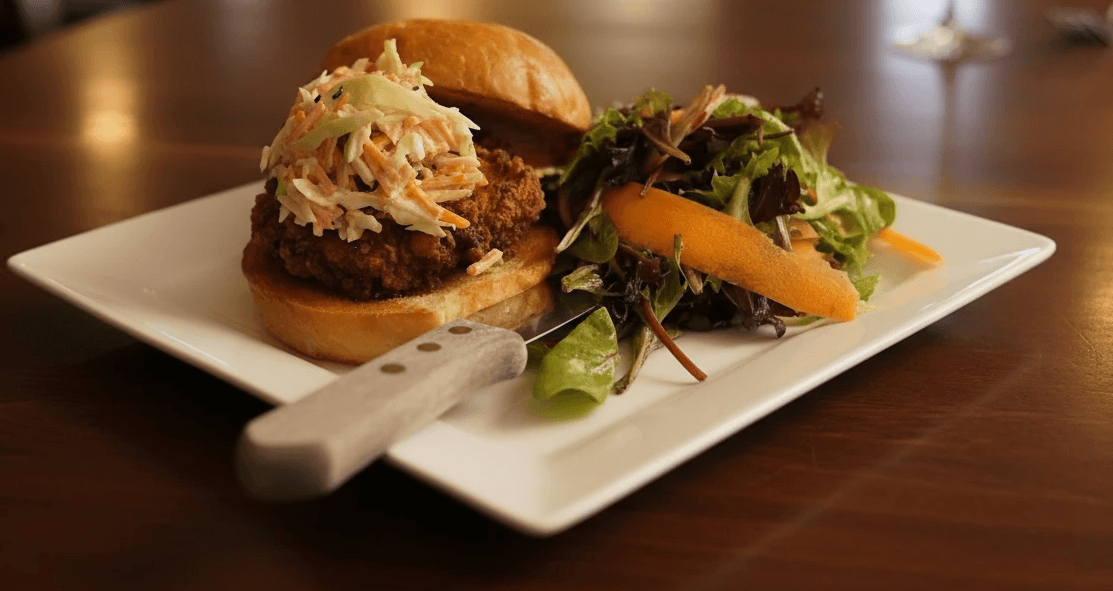 Hand-Breaded Crispy Chicken, Slaw, and Secret Sauce on a Macrina Brioche Bun