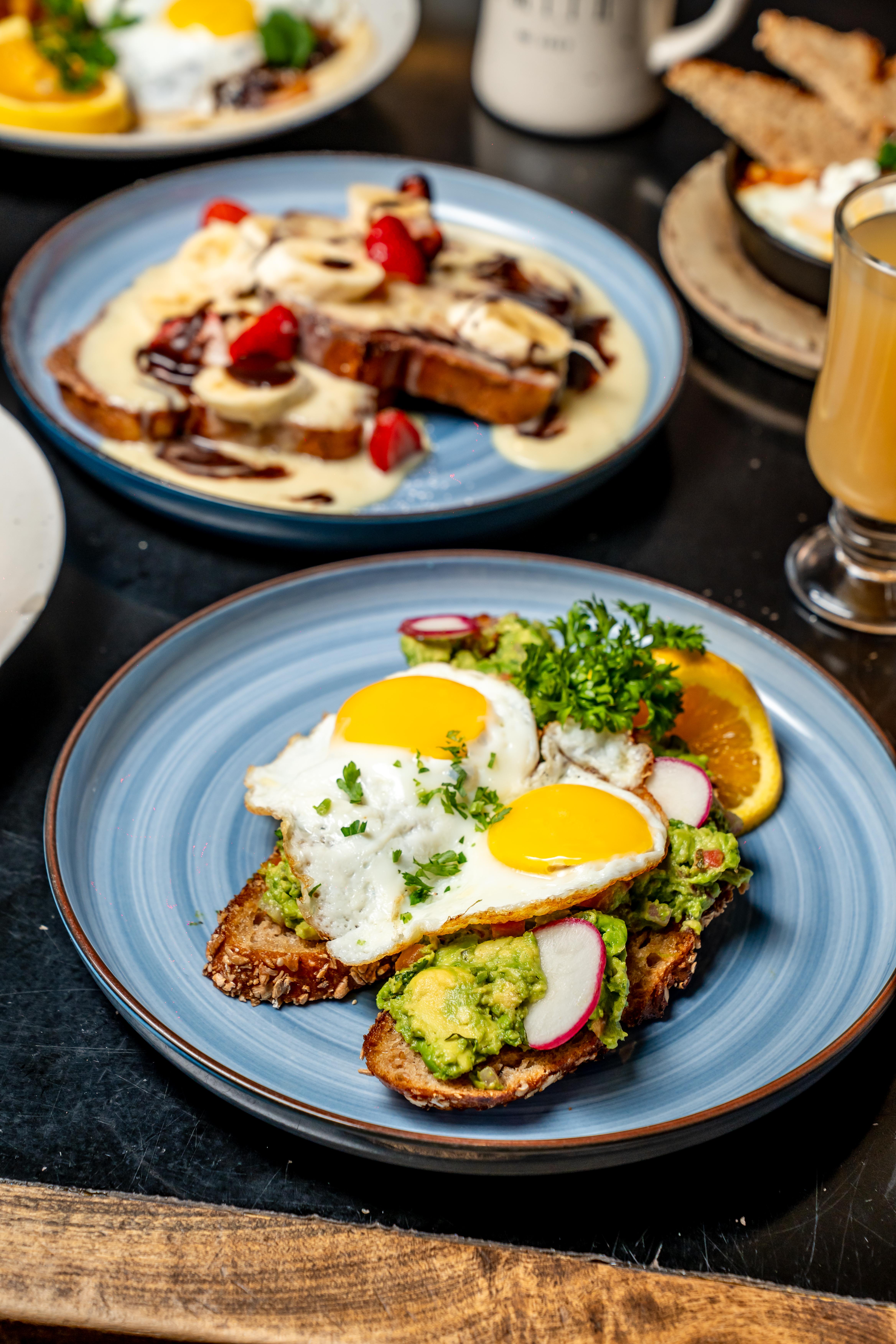 Toasted Bread, Avocado Spread, Radish, Two Eggs