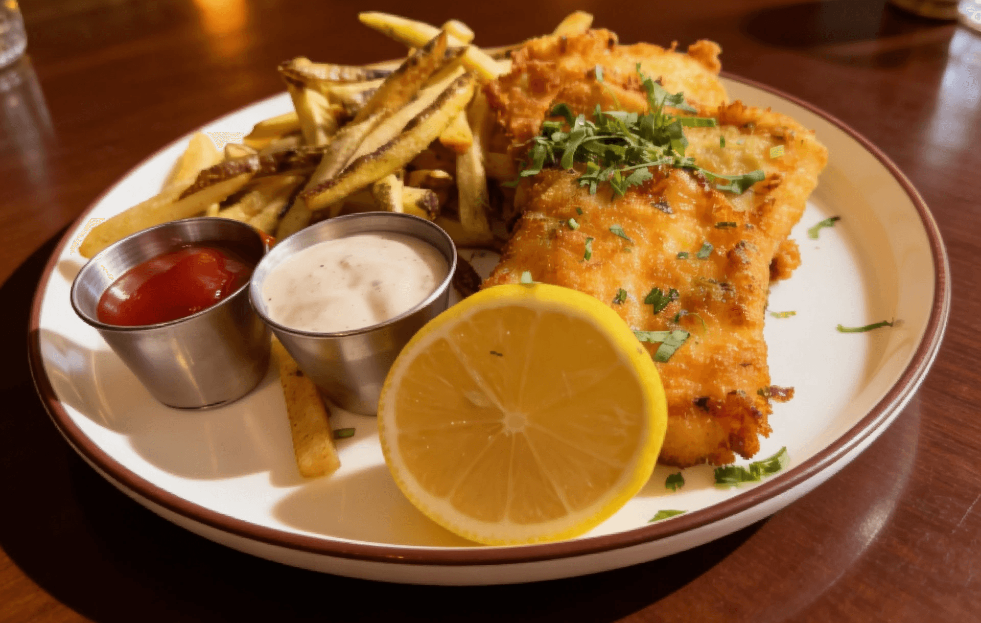 Beer Batter Panko Breaded Alaska Cod, House Fries, Tartar Sauce